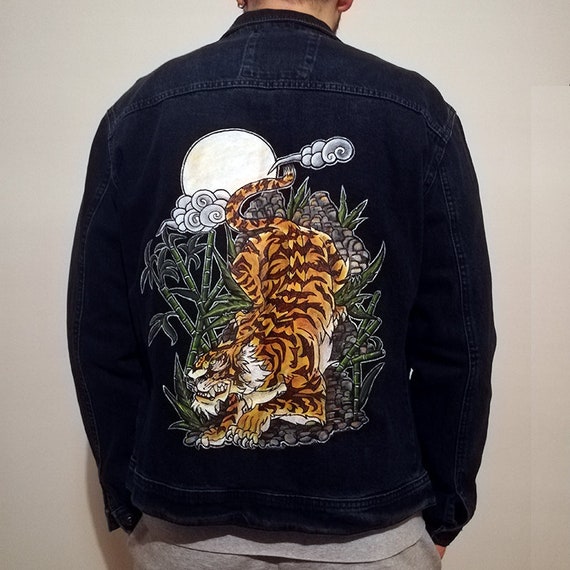 Alm Artbox Asian Tiger Tattoo Hand Painted Denim Jacket Etsy Uk